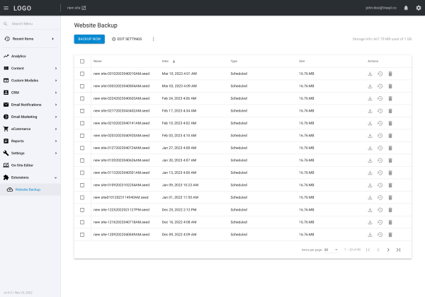 With the Website Backup extension, you don’t have to worry about individually backing up each website element and file yourself. The extension does it automatically in the background at a convenient time for you