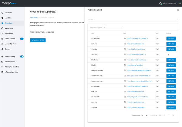 Enable fast and easy protection for your clients’ websites and businesses data with the Website Backup extension.